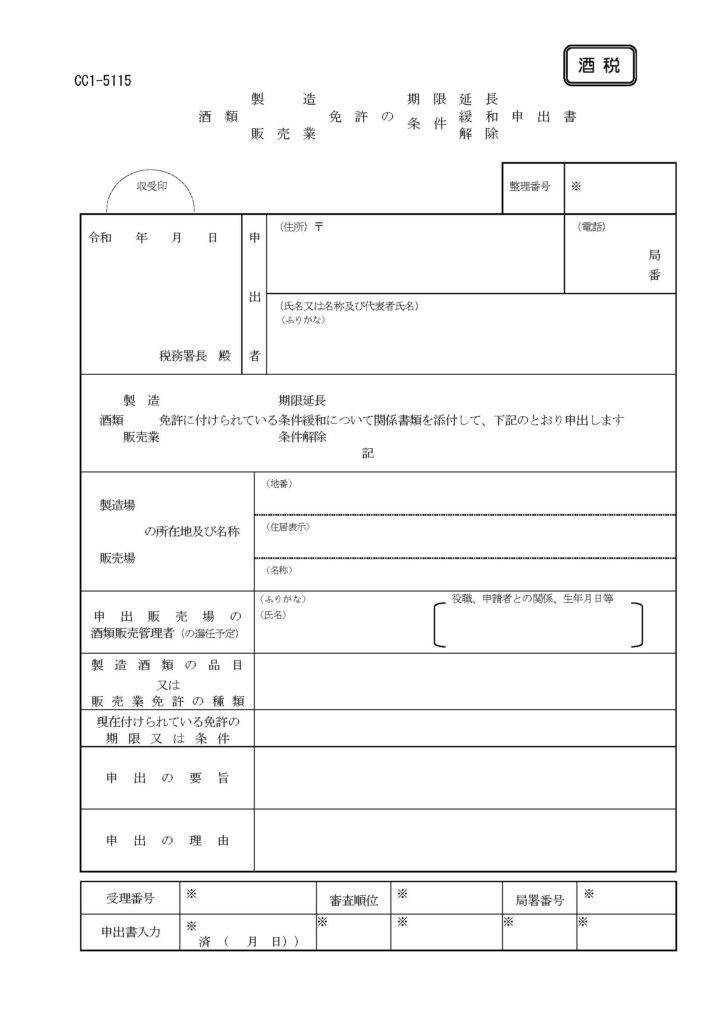 具体的には、税務署に「酒類販売業免許の条件緩和申出書」を提出することになります。